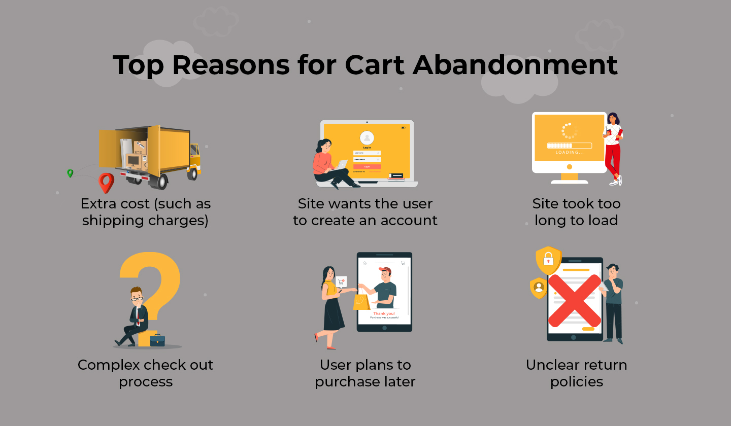 In addition to these, a complex checkout process, waiting for a sale, and unclear return policies are a few more reasons why people abandoned their shopping carts.
